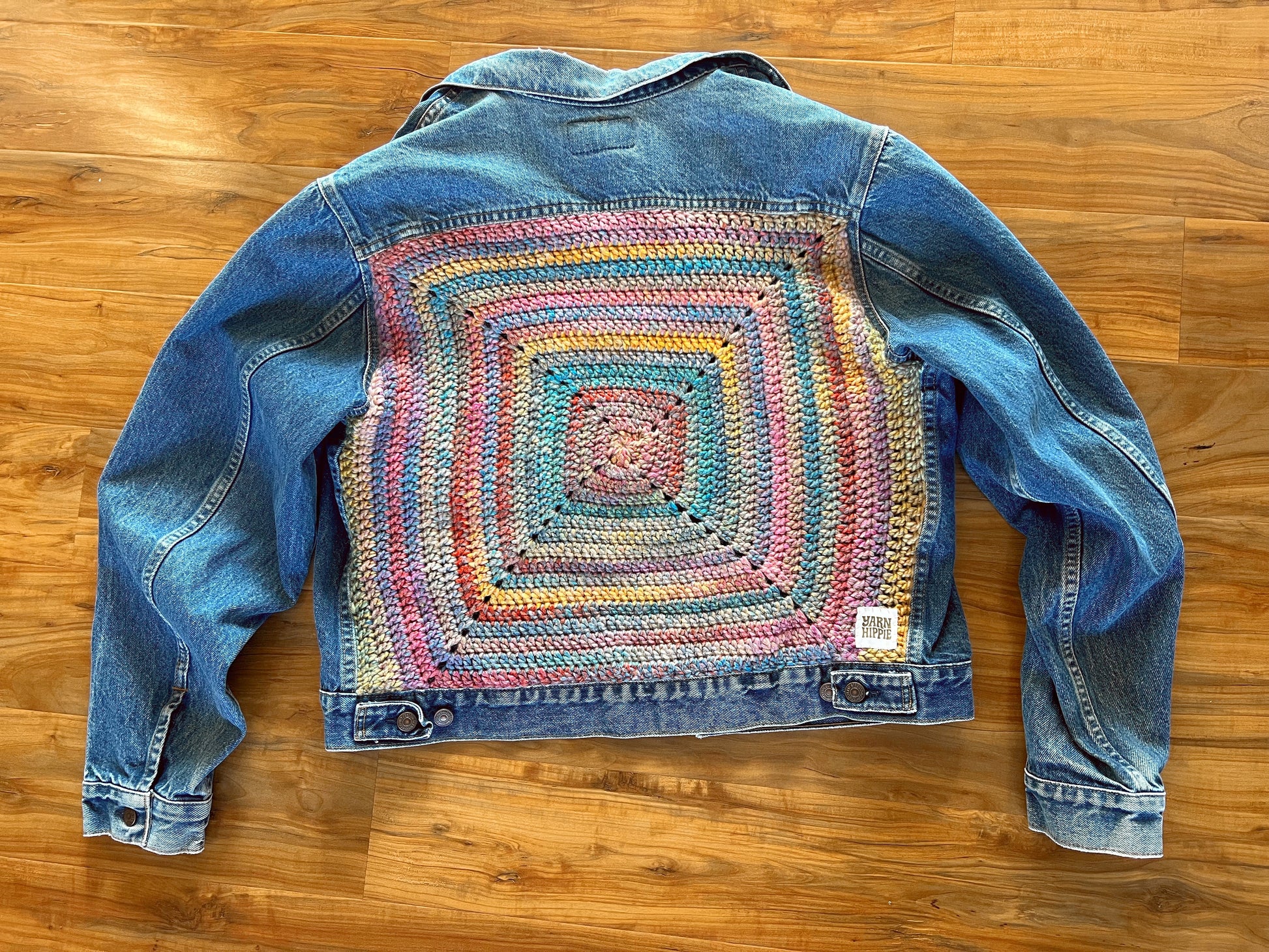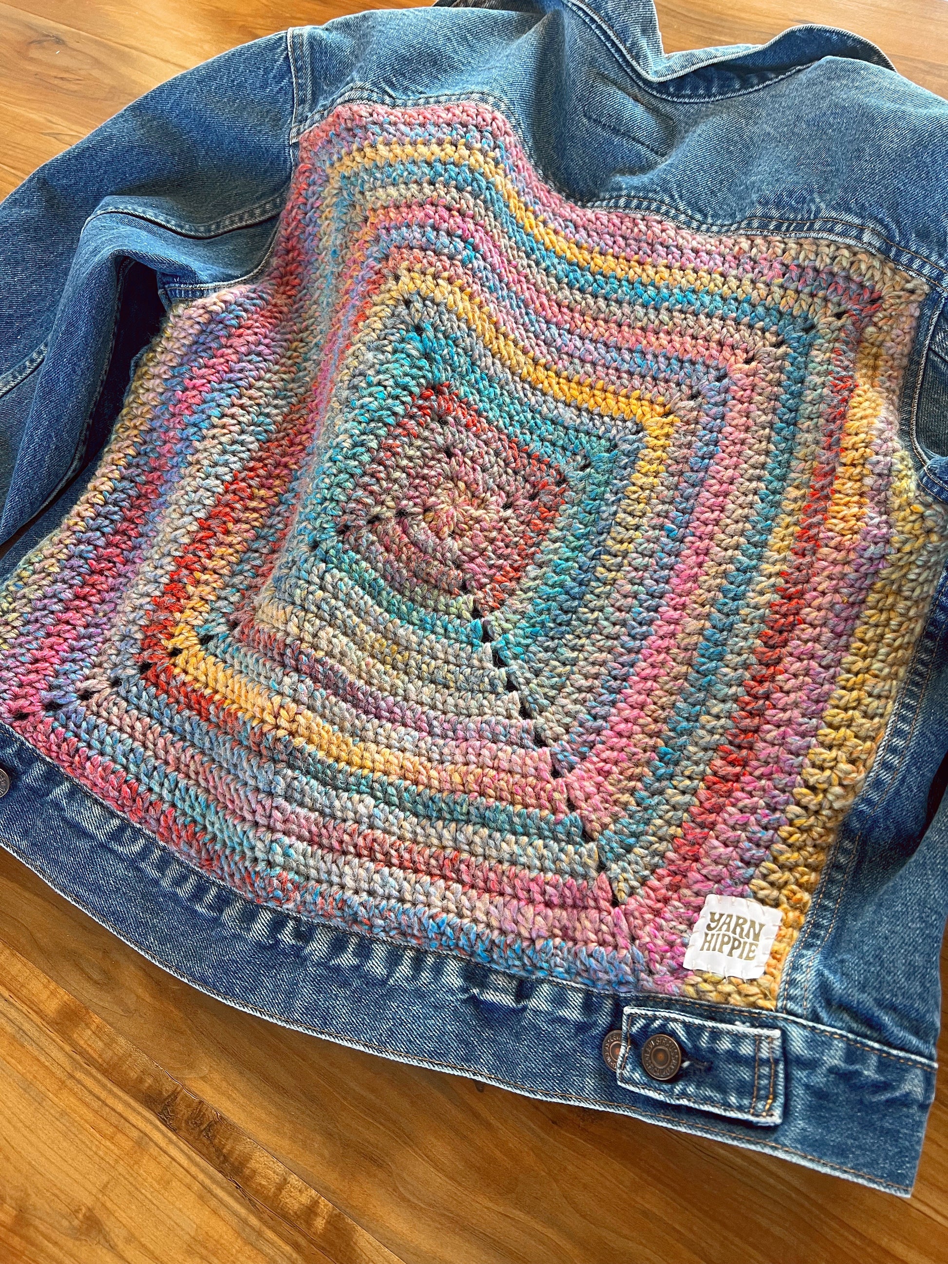 Groovy Vagabond — Up-Cycled Hand-Stitched Crochet Denim Jacket (Levi’s)